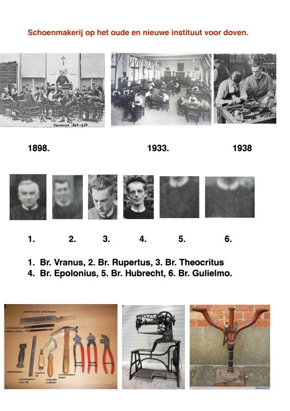 Foto nr 1" Br. Vranus kwam in 1986 op het oude instituut als het hoofd van de schoenmakerij in 40 jaar lang heeft hij de schoenmakers-leerlingen opgeleid en gewerkt. Hij verlaat in het voorjaar 1936 van het instituut naar de Broederhuis in Maastricht.